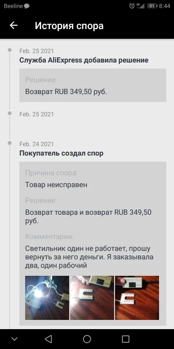 Из двух светильников один был с браком. После открытия спора продавец сразу вернул деньги . Молодец. Второй работает без проблем.