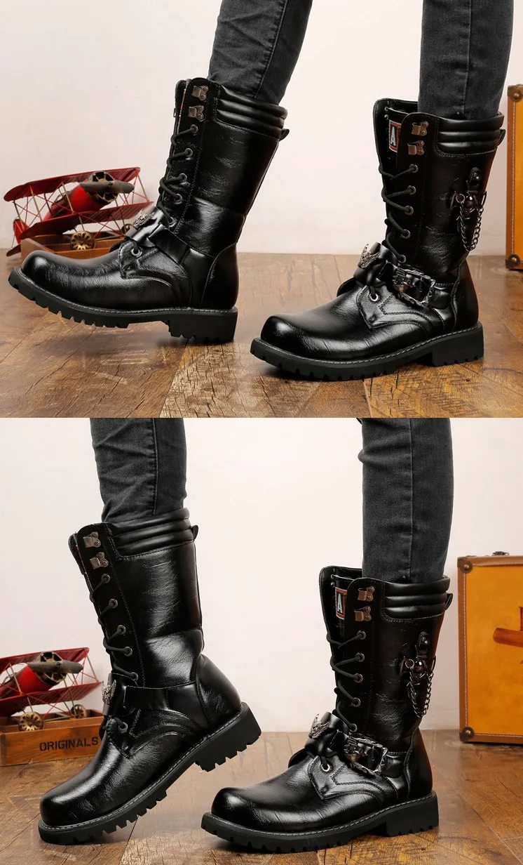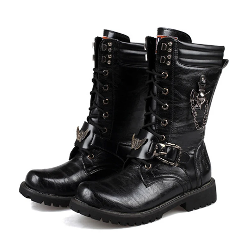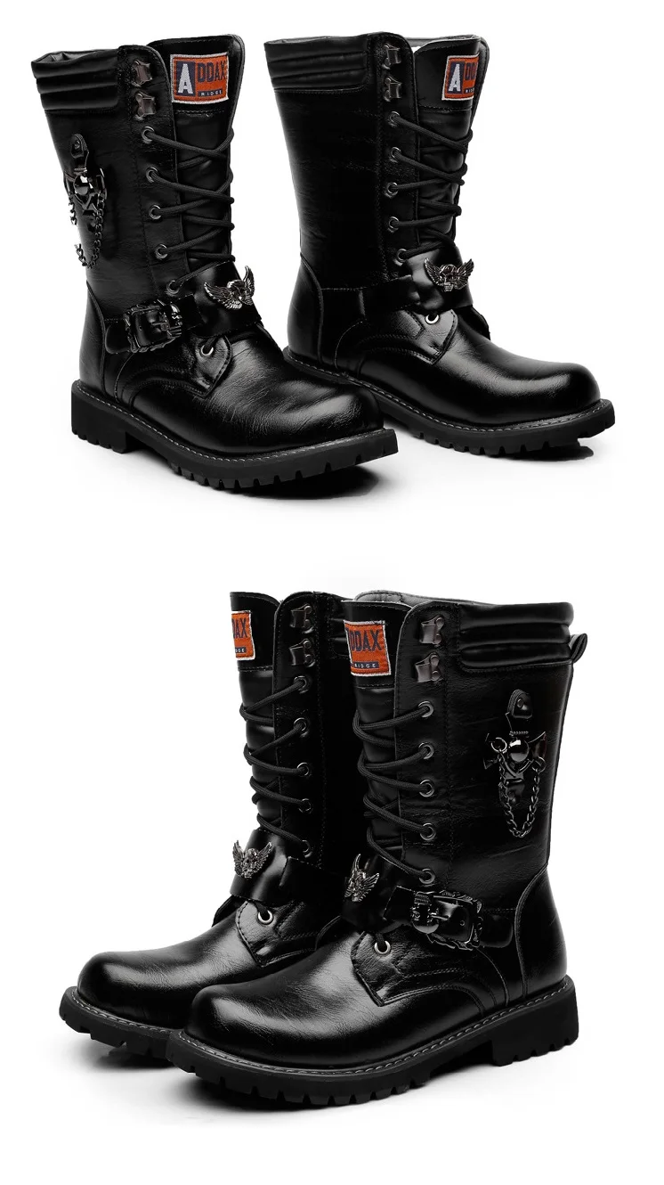 Модные мужские мотоциклетные ботинки; Армейские мужские ботинки с черепами; Мужская кожаная обувь в стиле панк-гот; Высокие повседневные ботинки; Botas Hombre