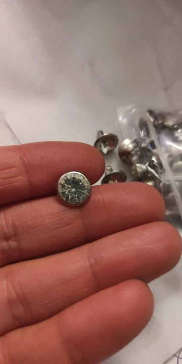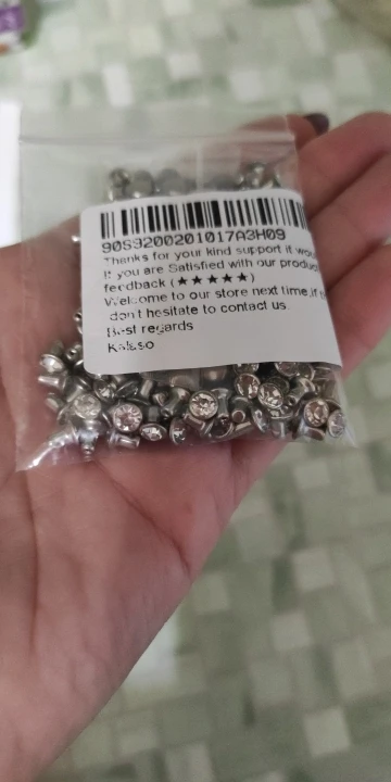 Мне очень нравятся эти заклёпки в качестве украшения. Выполнены аккуратно, блестят! Буду заказывать другие размеры. Продавца рекомендую.