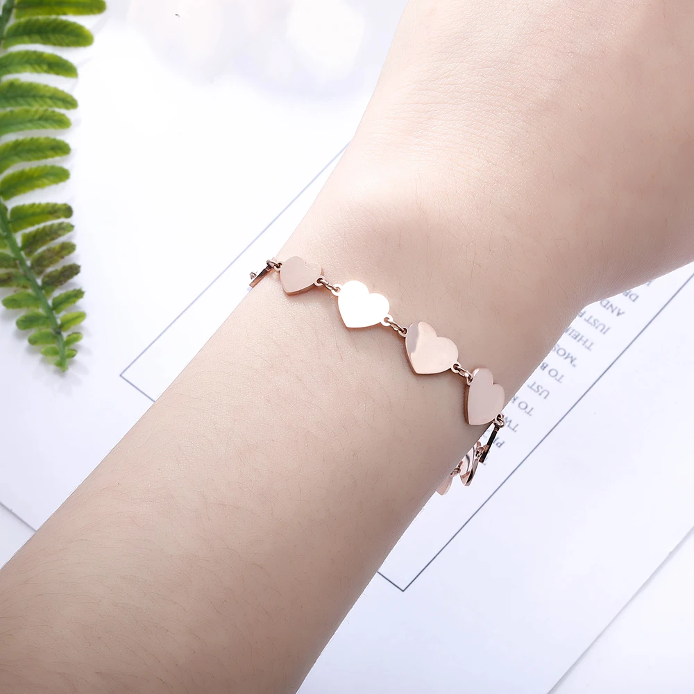 Женский браслет из нержавеющей стали под розовое золото, с подвеской в форме сердца
