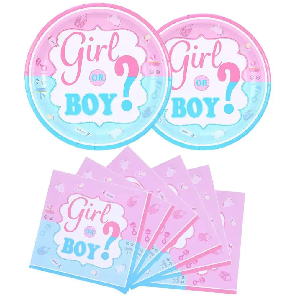 Пол раскрыть одноразовая посуда набор душа ребенка мальчик или девочка Бумага тарелки набор столовых приборов Пол раскрыть аксессуары поставки