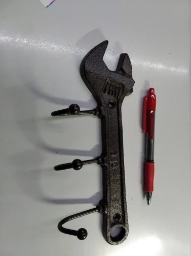 Хорошо. Я должен был смотреть на фотографии лучше, или я был отправлен отрыв, который несколько напоминает фотографии. Вся вешалка для одежды из приплюснутого чугуна, который ощущается при химическом ржавчине. Крючки выглядят так, будто они не могут носить больше, чем несколько легких вещей.