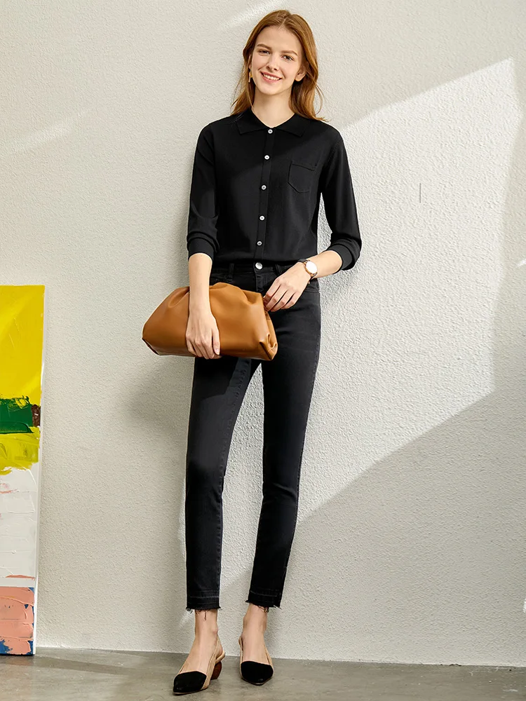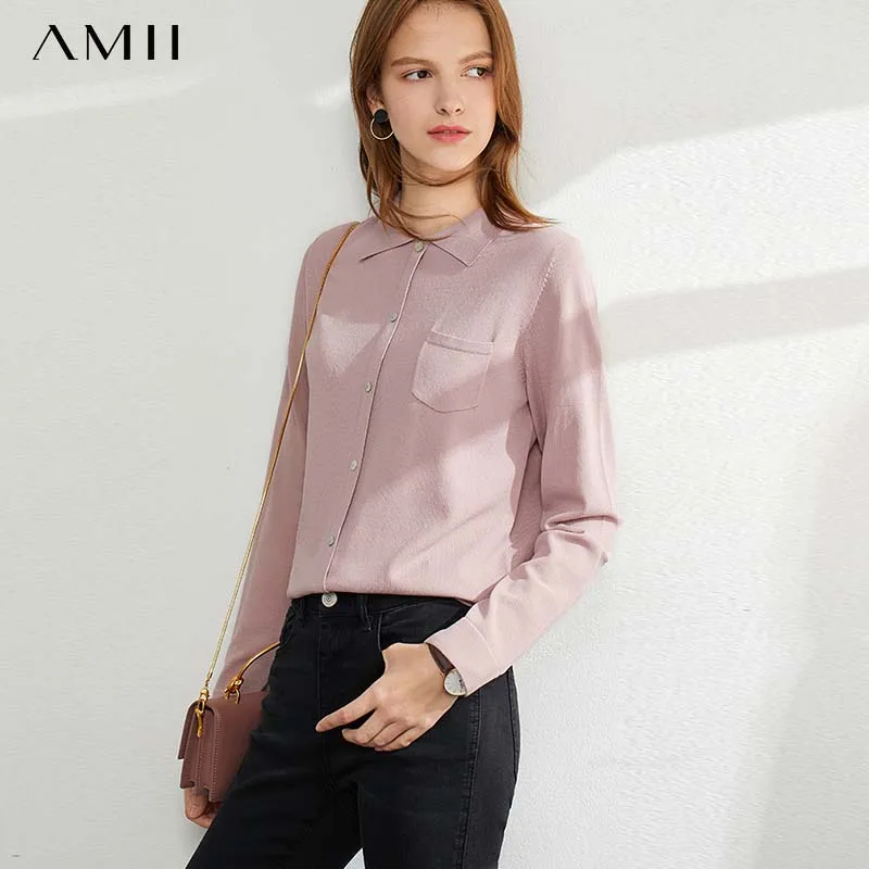 Amii yang air POLO свитер с воротником для женщин 2020 весна и осень Новый рукав голова носить с Длинным Рукавом Джемпер Топ 12037494