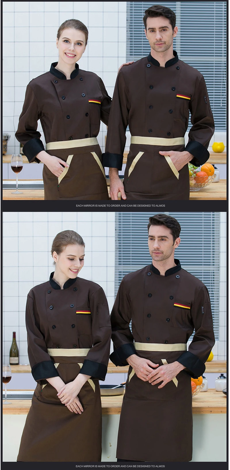 Унисекс шеф-повара Униформа Ресторан пекарня кухня рабочая одежда с длинным рукавом дышащие повара Куртки Комбинезоны наряд шеф-повара пальто