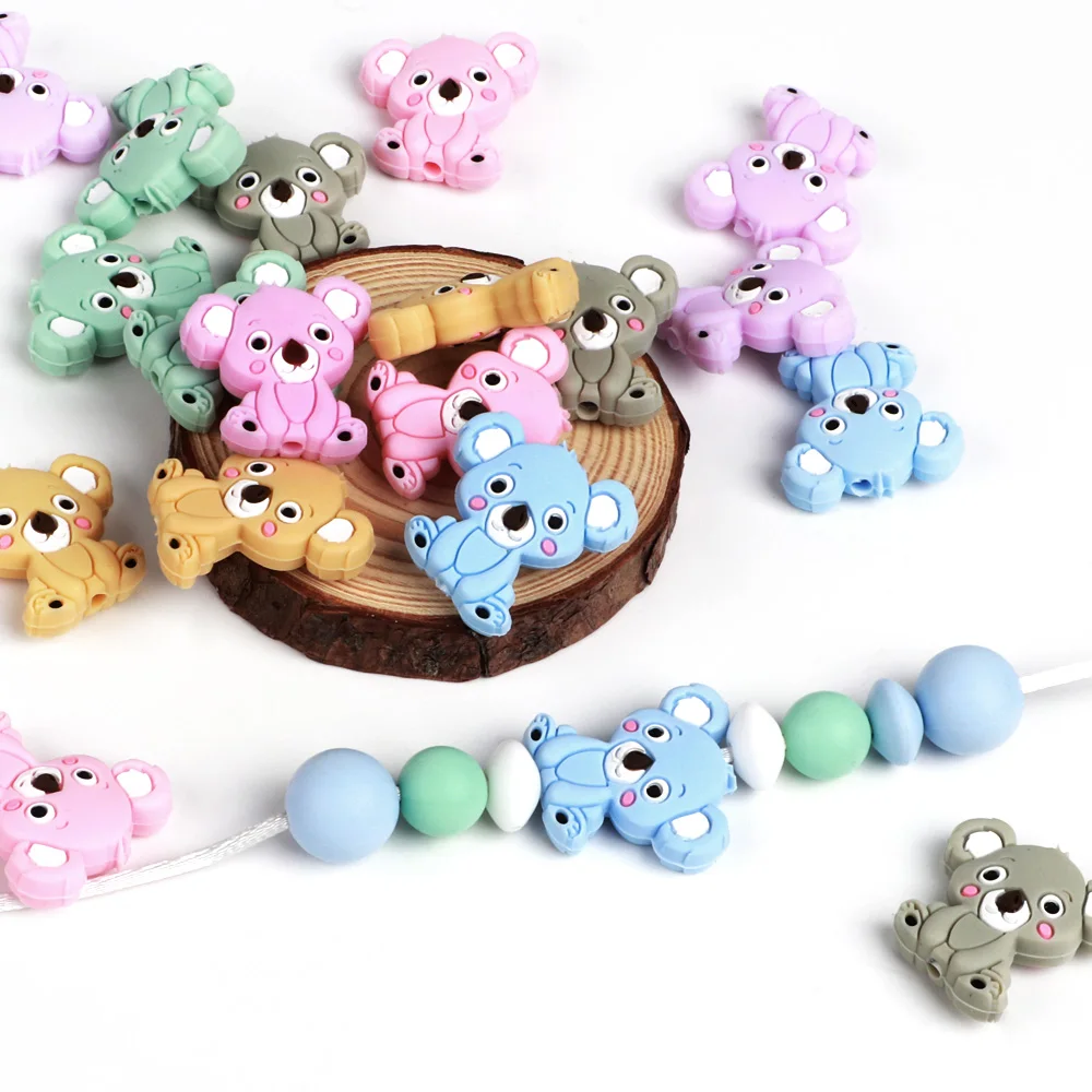 TYRY.HU 10 шт. силиконовые бусины для прорезывателя зубов коала DIY Детские цепочки для соски Прорезыватель для зубов Монтессори сенсорные Мультяшные ювелирные изделия бусины без БФА