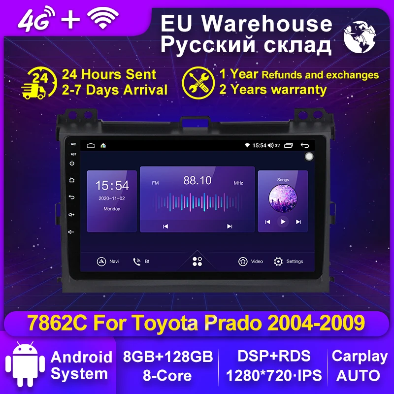 Android11 8G + 128G Автомобильный мультимедийный GPS-навигатор, радио плеер для Toyota Land Cruiser Prado 120 2004-2009 с DSP IPS 1280*720