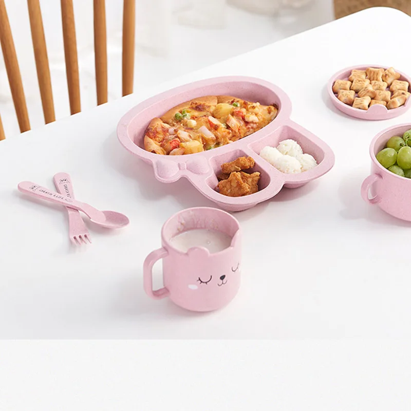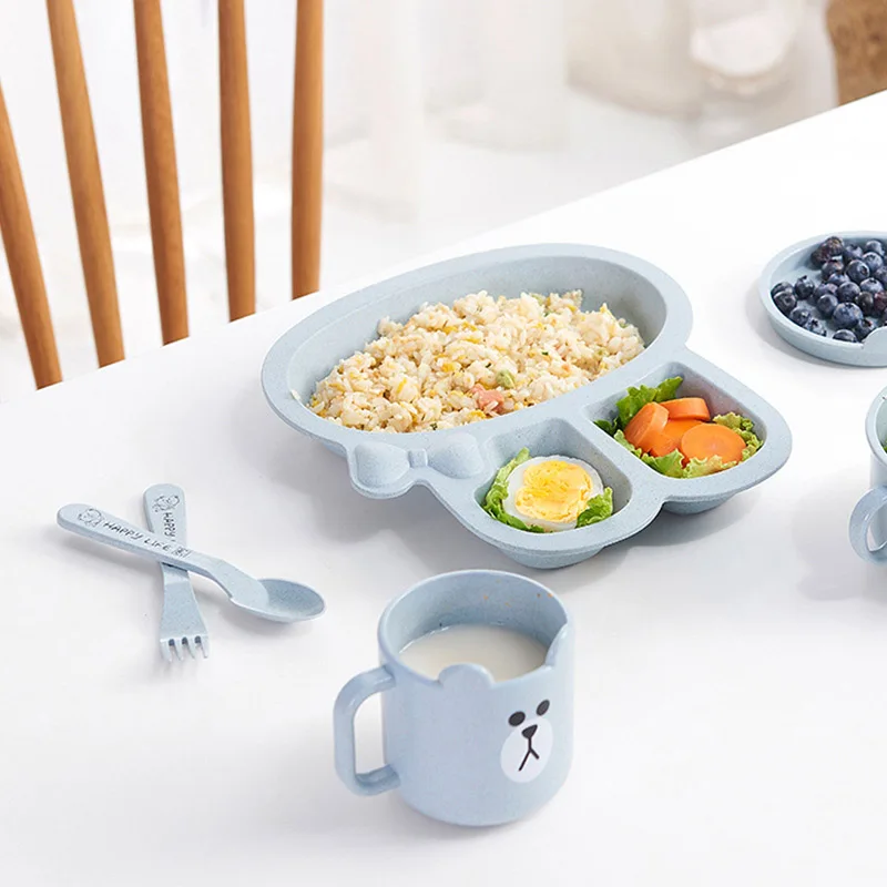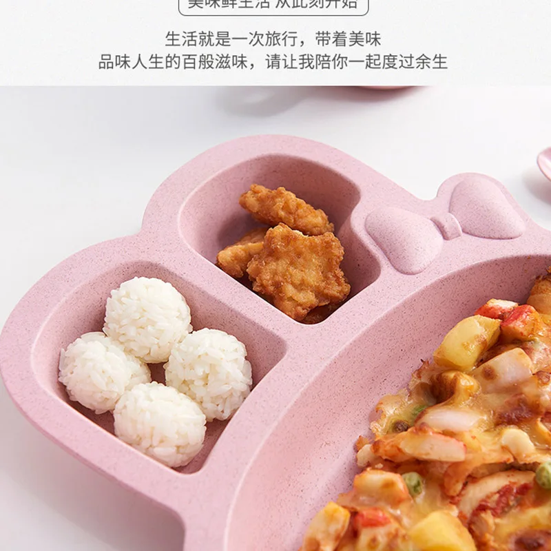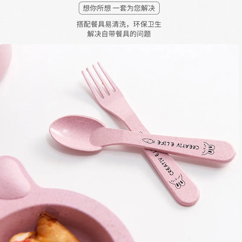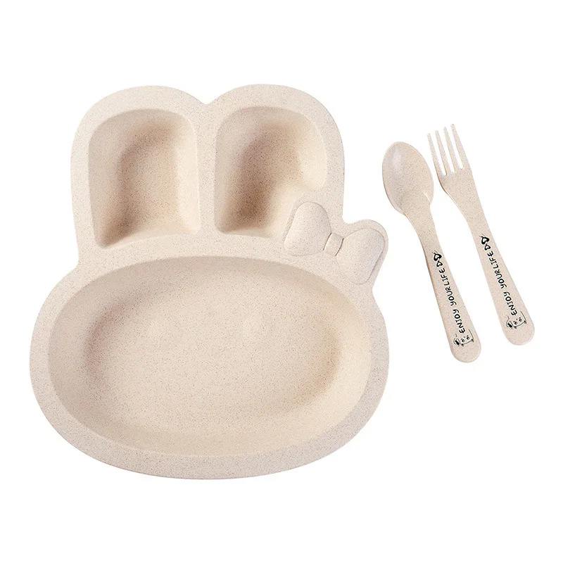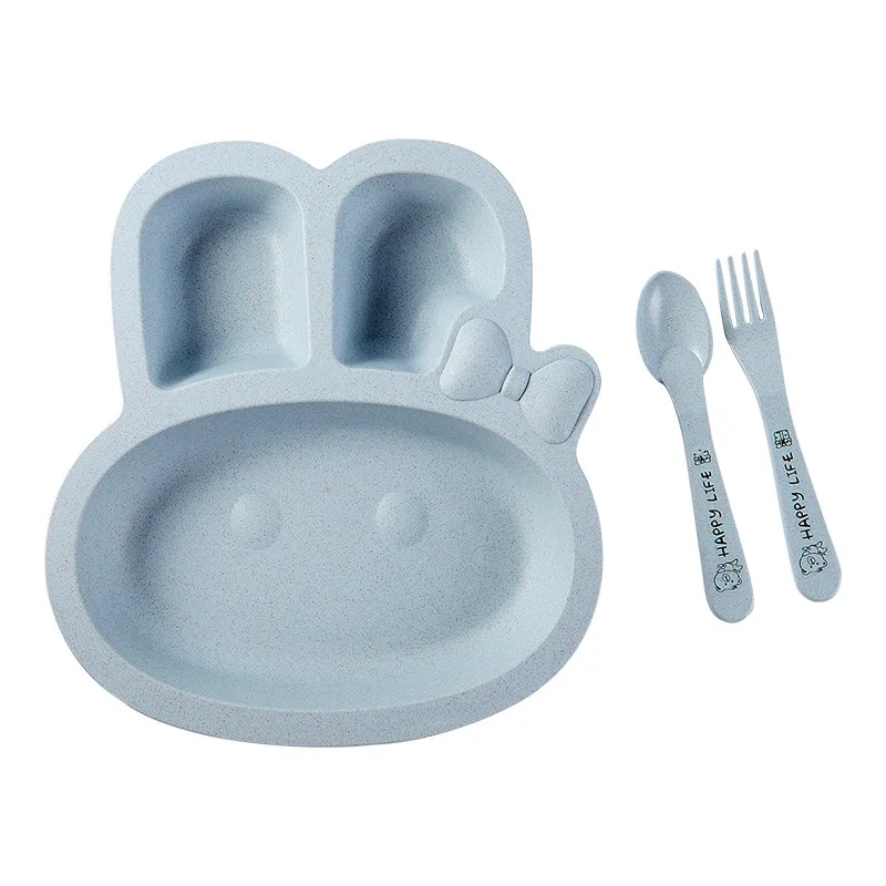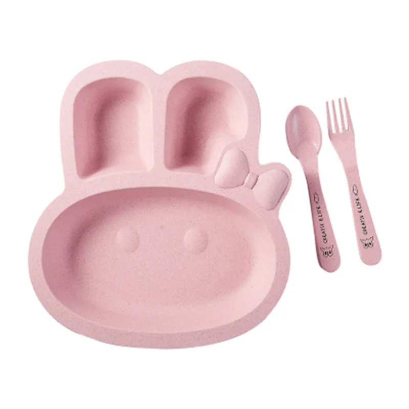 3 шт.компл. детская миска, ложка, вилка, кормление, столовая посуда, мультяшный кролик, детские блюда, столовая посуда, антигорячая тренировочная обеденная тарелка