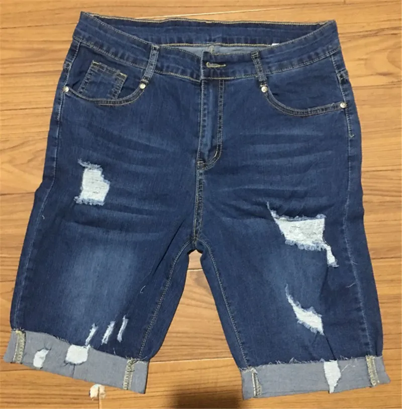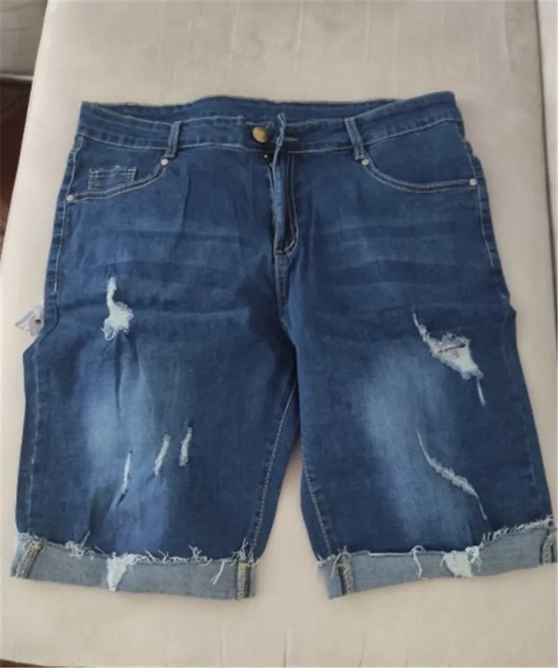 Мужские рваные джинсовые шорты, хлопковые Бермуды, дышащие синие джинсовые шорты, мужские рваные обтягивающие короткие джинсы с дырками, 2021