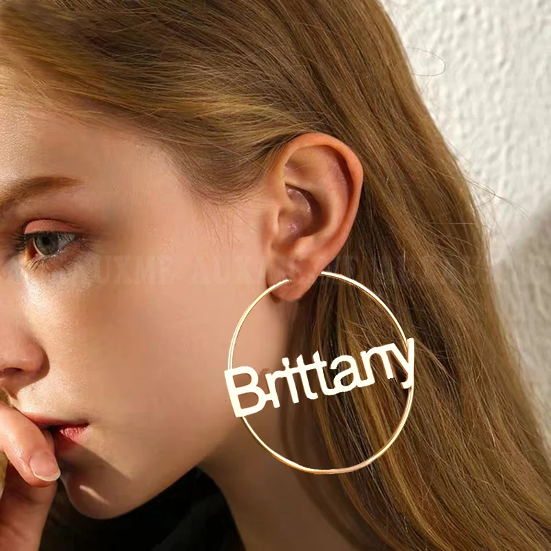 Auxauxme персонализированные именные серьги из нержавеющей стали с буквами для женщин, именные серьги ручной росписи, свадебные украшения