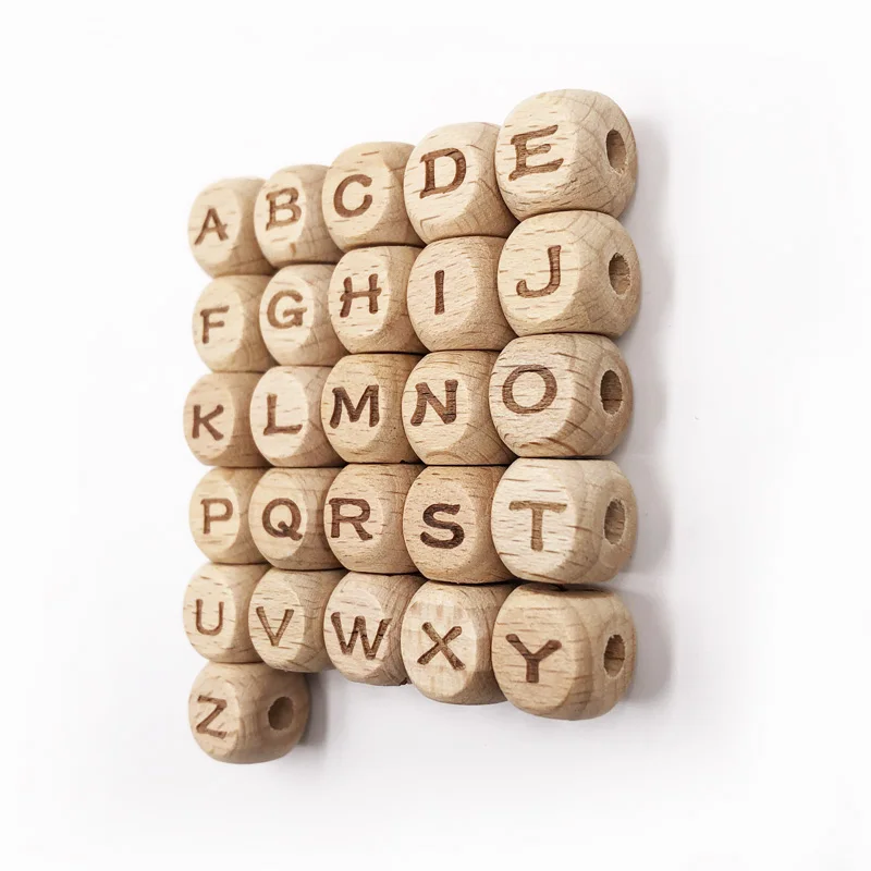 Бусины квадратные из натурального дерева, A-Z букв алфавита, для изготовления ювелирных изделий, 1-26 шт.