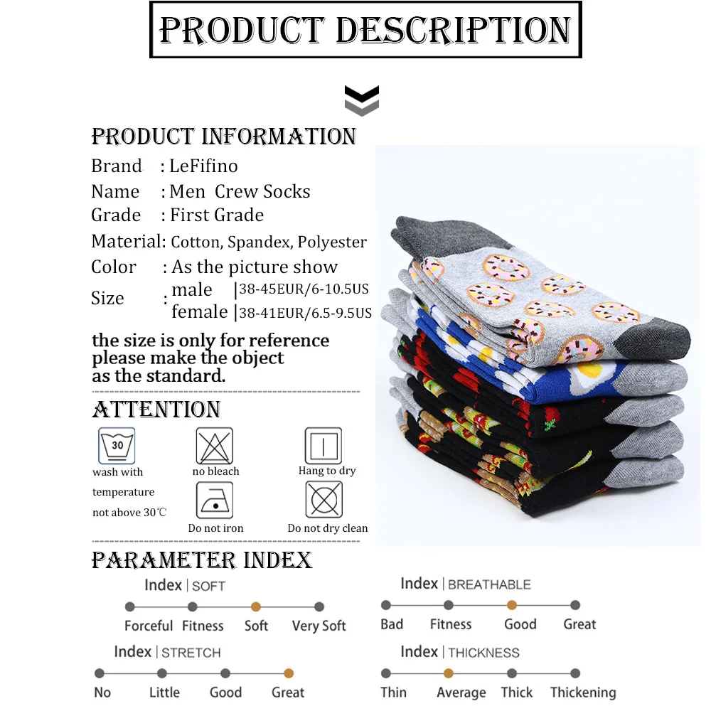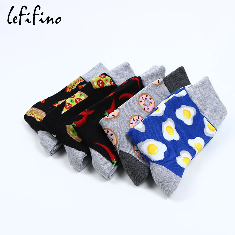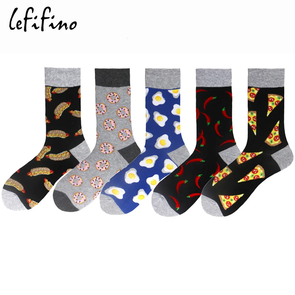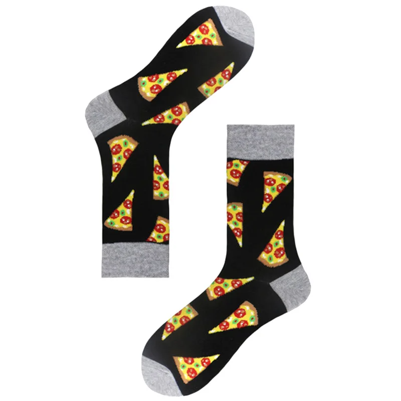 Носки мужские в стиле Харадзюку, чёсаный хлопок, шикарная пицца, хот-дог, яйцо, веселые Смешные, крутые, унисекс, длинные, для скейтборда, зимние