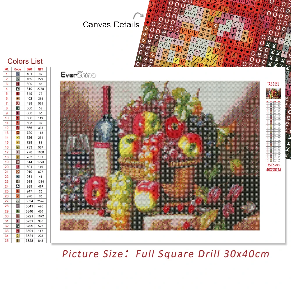 Алмазная мозаика, полный макет: 5D алмазная картина с фруктовым крестом