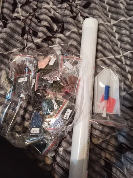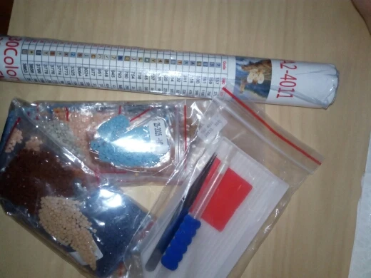 Посылка пришла очень быстро - за 10 дней. Все алмазики на месте, находятся в ЗИП пакетиках. Упаковка очень хорошая. Картина намотана на валик. Продавцу большое спасибо. Приятно когда все быстро и четко. Буду выкладывать.
