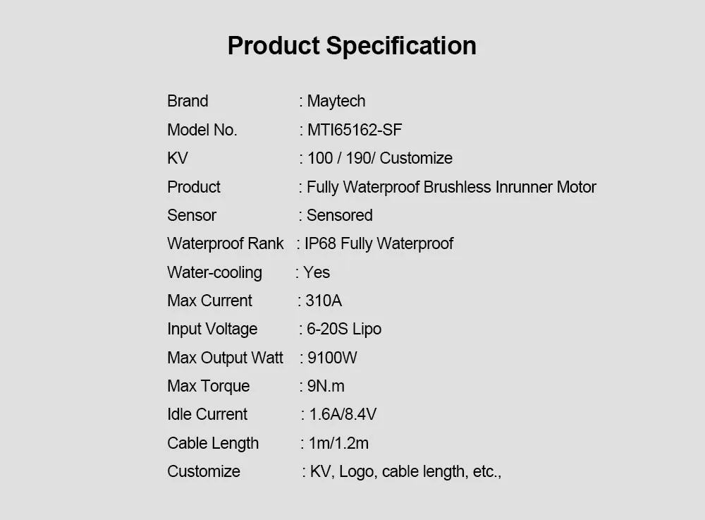 Полностью водонепроницаемый Бессенсорный двигатель Maytech 65162 дю...