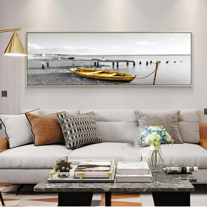 Скандинавский постер с золотой лодкой, рисунок на холсте, прибрежна...