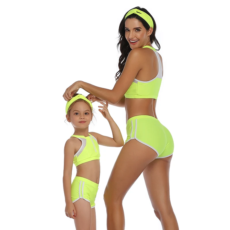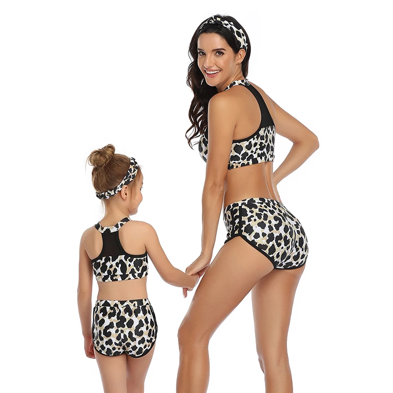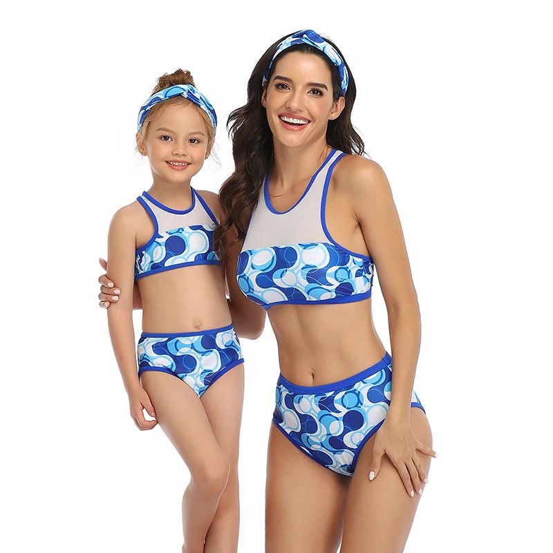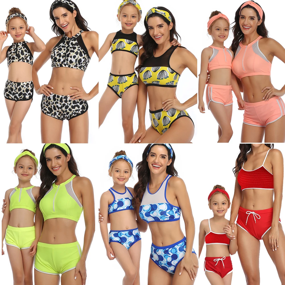 Семейный комплект для женщин и детей, комплект из двух предметов, спортивный купальник, бикини для мамы и дочки, купальный костюм, пляжная одежда с принтом