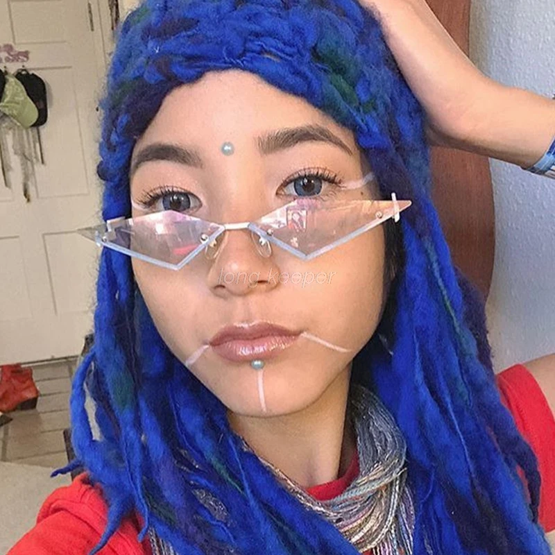 Солнцезащитные очки кошачий глаз женские, роскошные винтажные маленькие зеркальные солнечные очки без оправы, с защитой UV400, в стиле хип-хоп