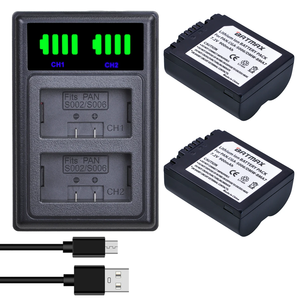 Цифровой аккумулятор Batmax CGA-S006 CGR S006E S006 + двойное зарядное устройство USB со светодиодной подсветкой для камеры Panasonic DMC-FZ7 FZ30 FZ50 FZ28 FZ18 TZ8 FZ8