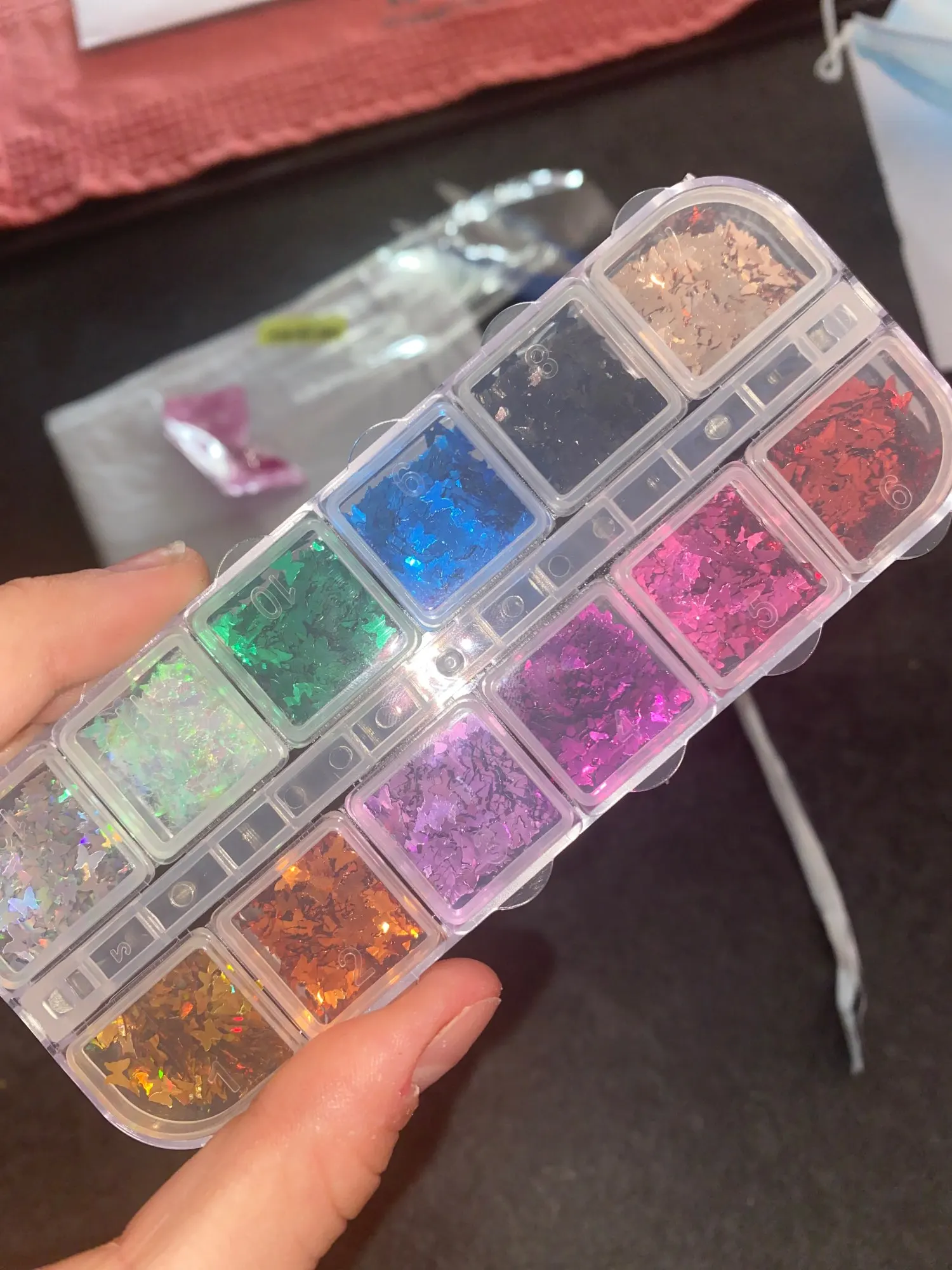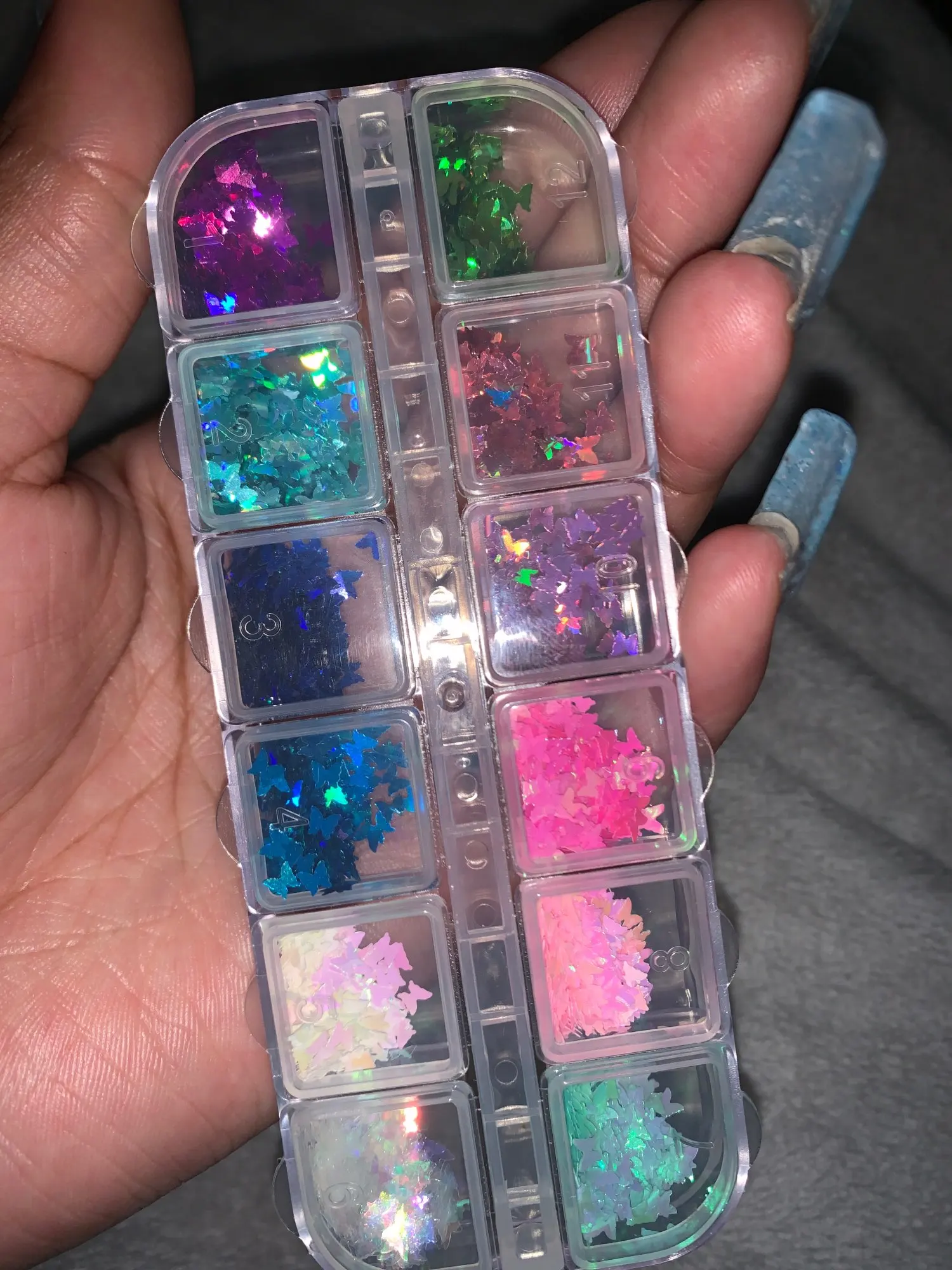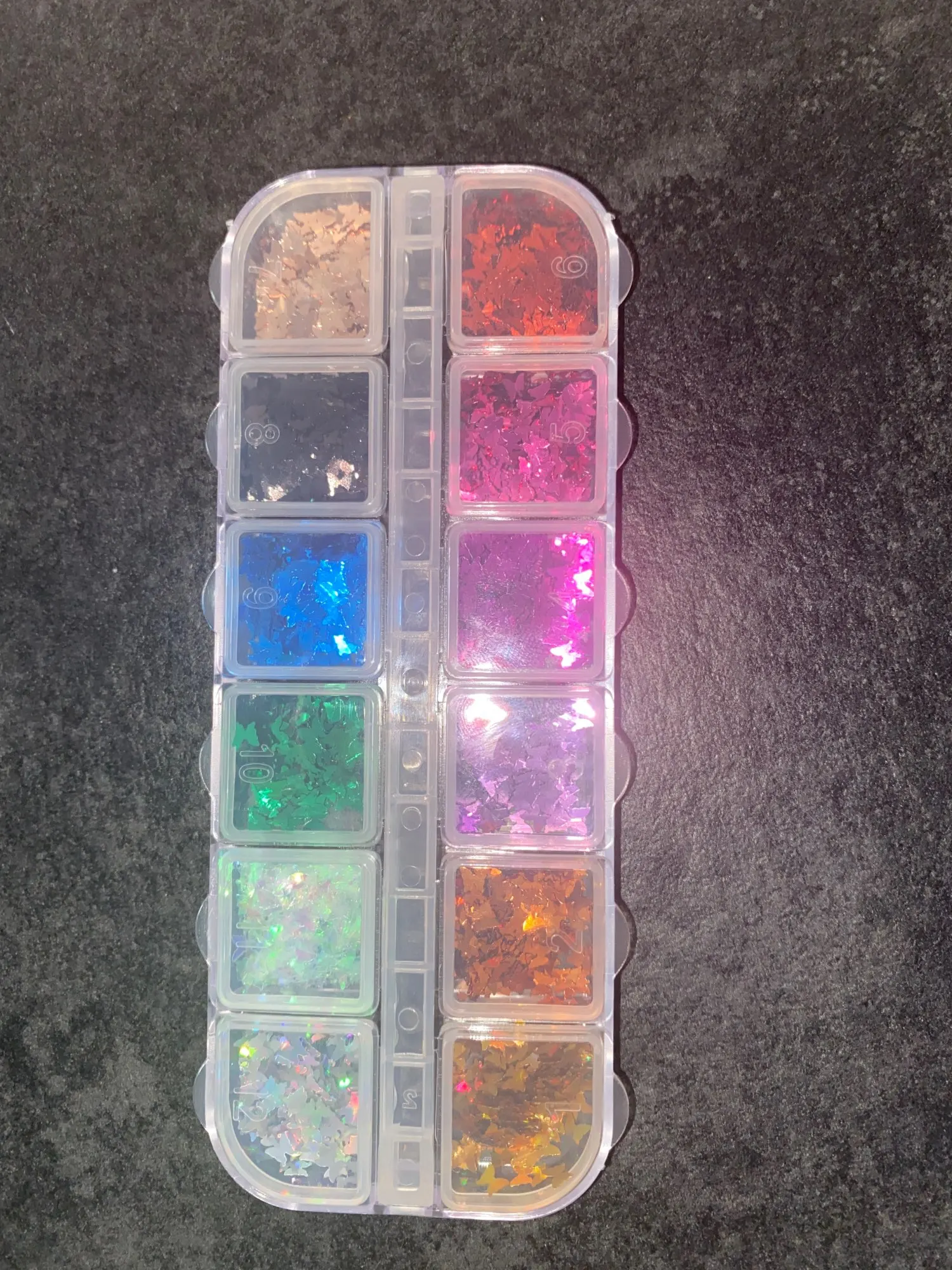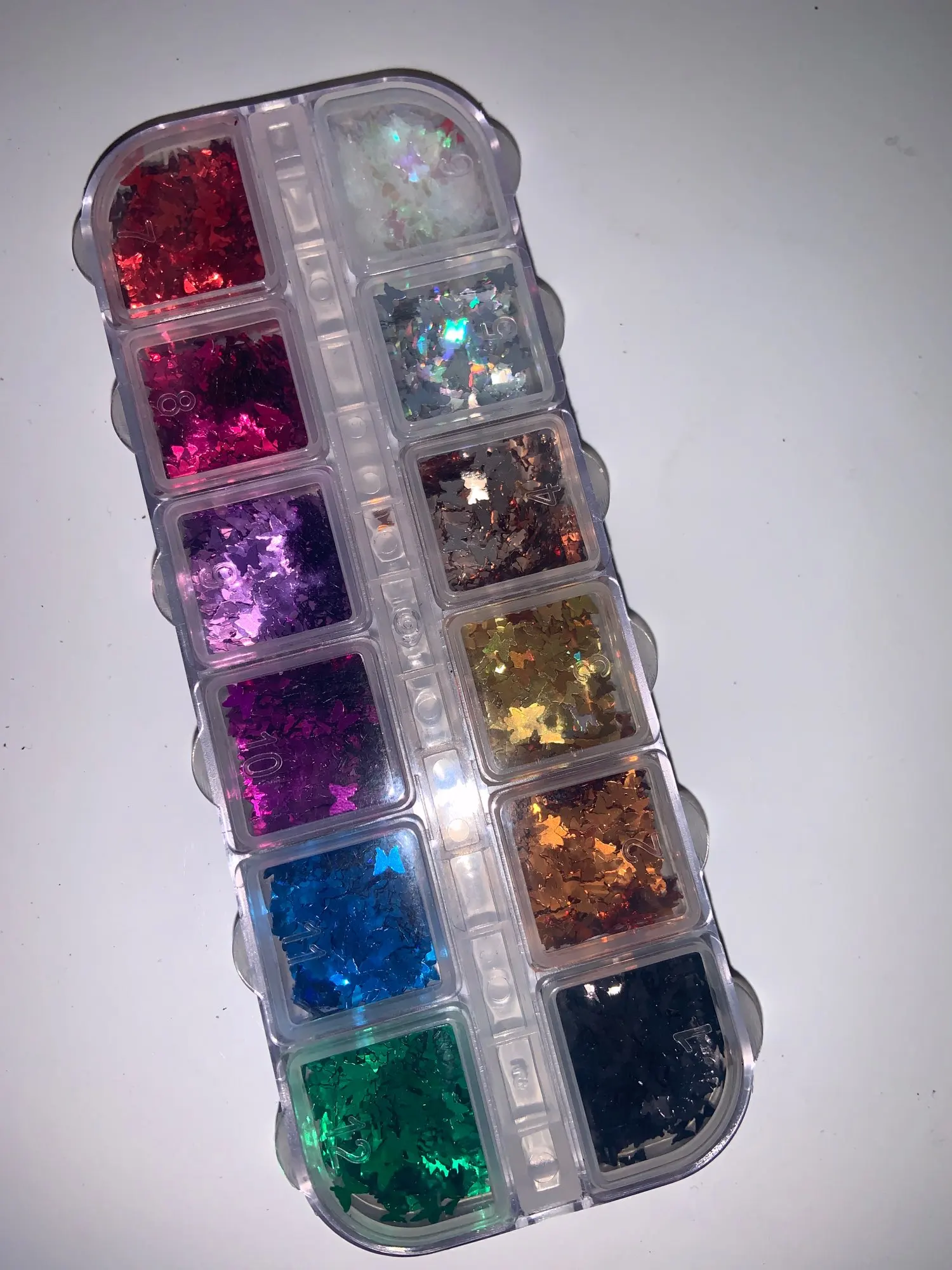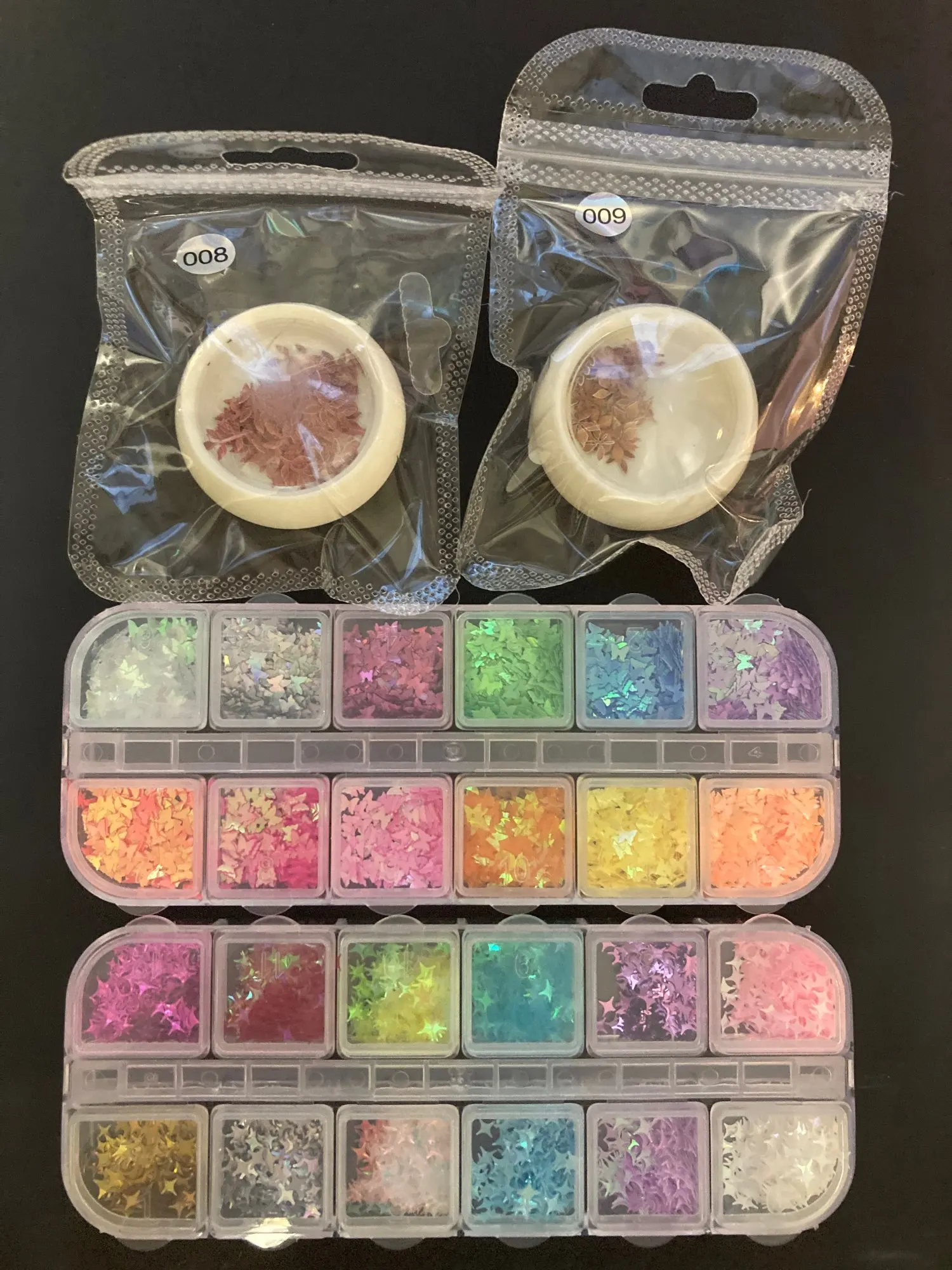 Много вертикальных блесток в каждом, и он упакован с уплотнением, чтобы они не пролились во время доставки. Я доволен количеством продукта, который я получил в каждом контейнере