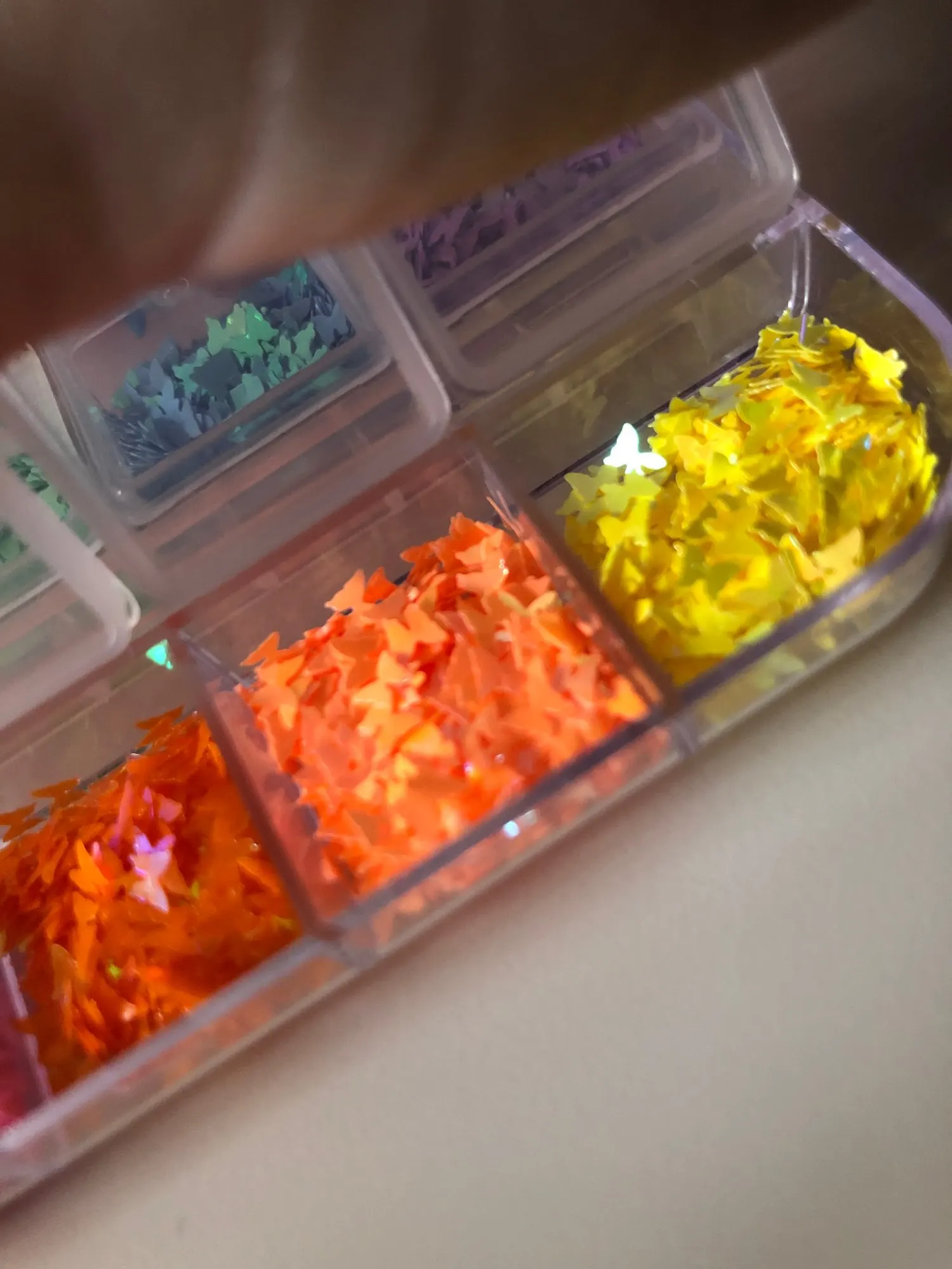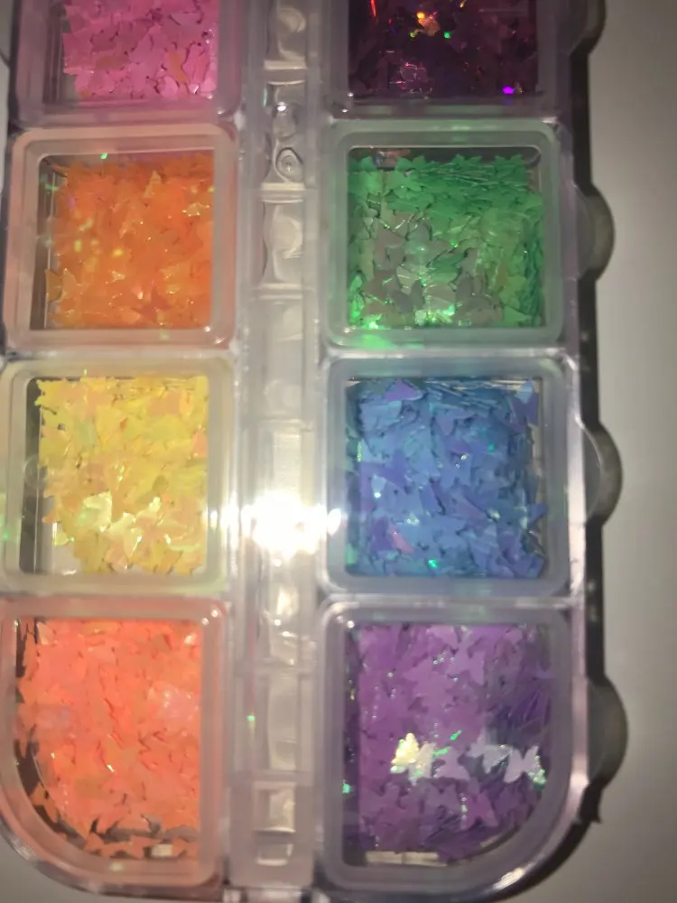 Не практично использовать как украшение на ногтях. Бабочка слишком толстая, я должен положить тройной кусок геля. Я собираюсь перепродать их.