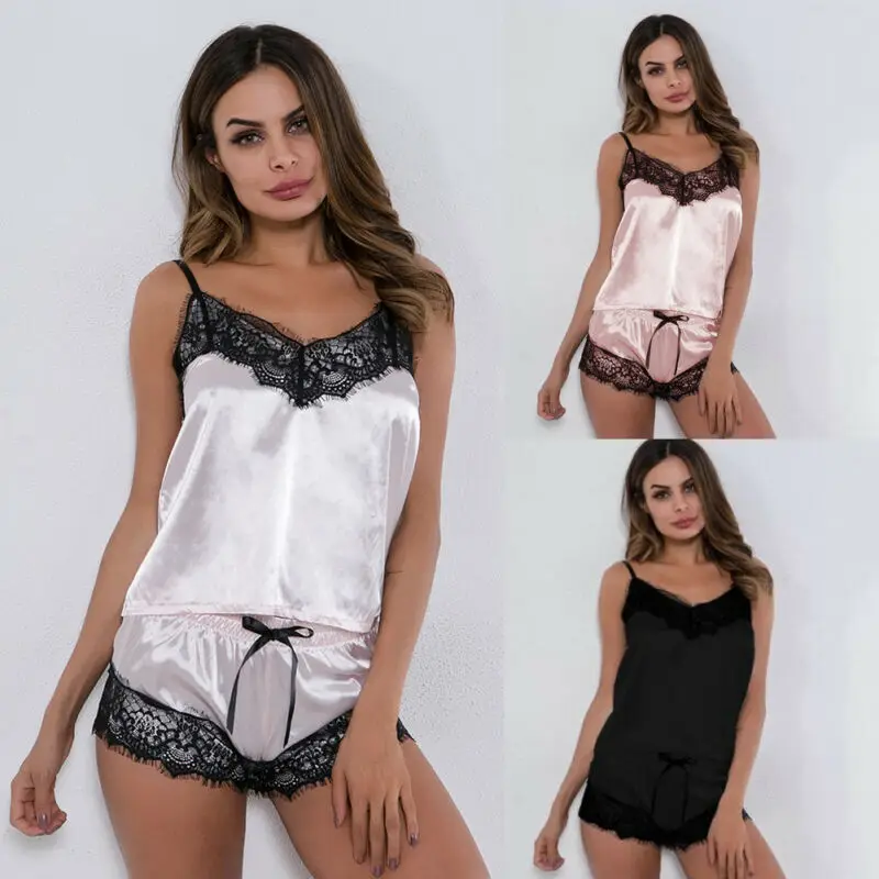Женское сексуальное нижнее белье, комплекты одежды для сна, атласна...