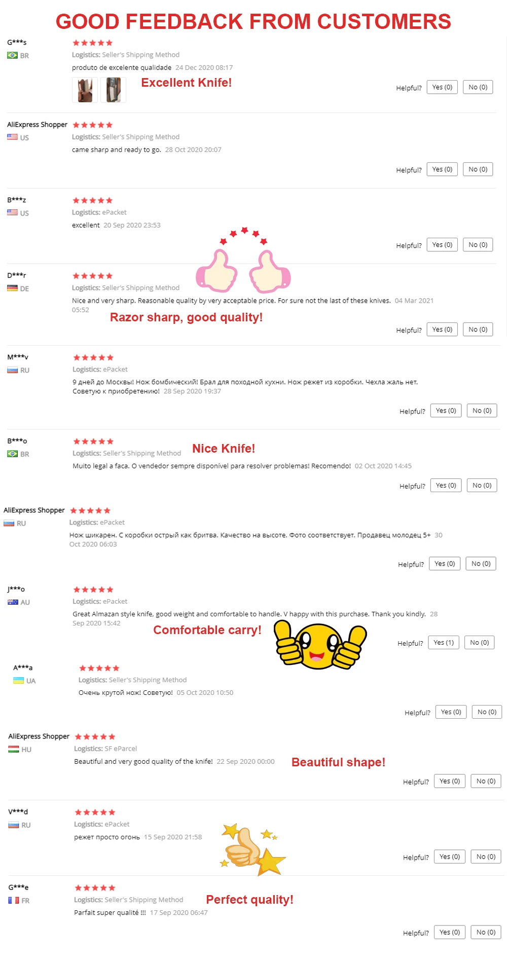 Нож хороший но с доставкой подкочали забыли на складе из за чего заказ неделю не выезжал со склада, в наших условиях это средний срок ожидания но я заказывал с расчетом чтоб приехал до нового года апоздали. А вот продавец молодец держал связь все время пока нож шел до меня (к этой доставки не относится но стоит упомянуть что заказывал у другого продавца тот перепутал место назначения и выбрал Астану в место Алматы где проживаю я такчто все же за доставку одну звезду дам