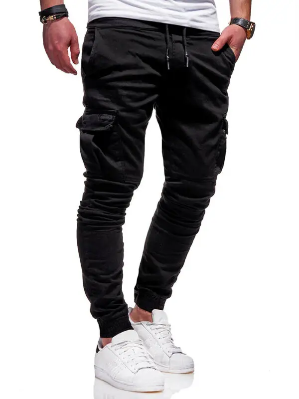 Мужские модные брюки с карманами, повседневные длинные однотонные брюки-карандаш черного, серого, армейского, зеленого и хаки цвета