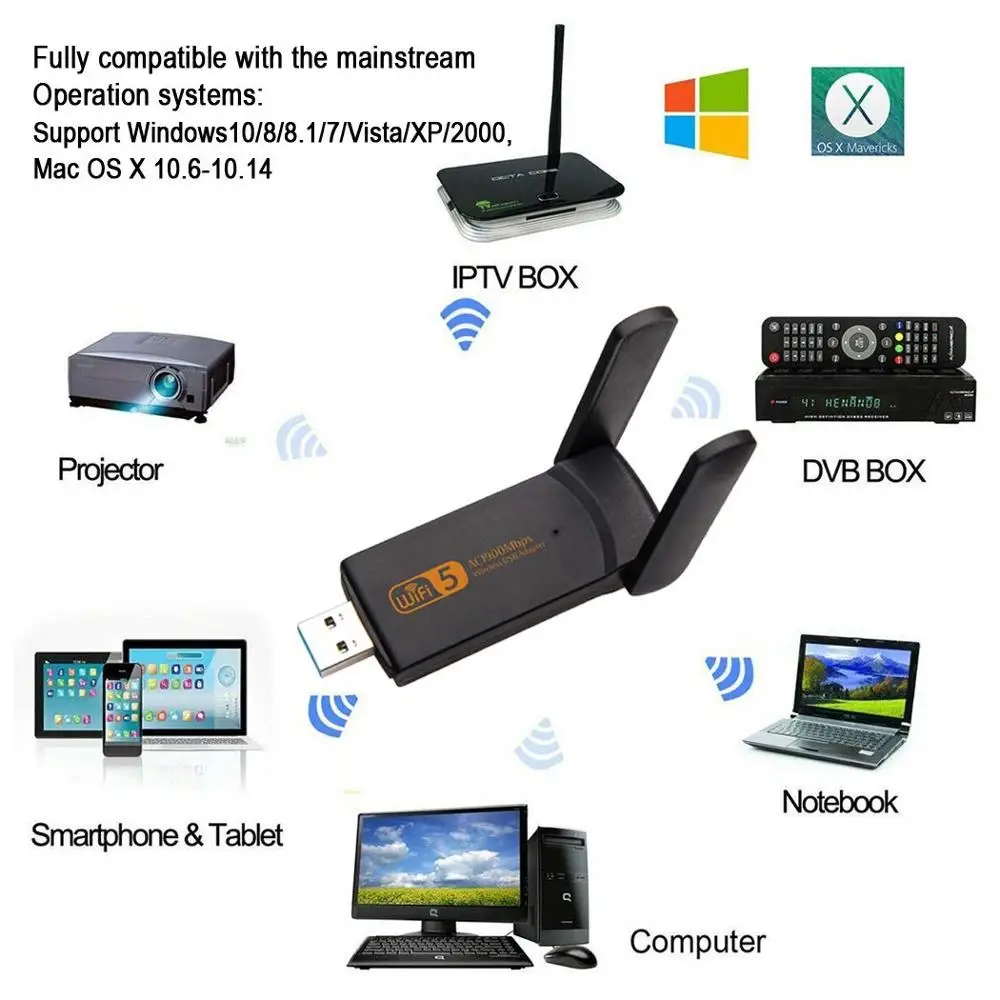 USB WiFi адаптер 1900 Мбит/с двухдиапазонный 2,4/5G беспроводной адаптер USB3.0 для настольного ноутбука, поддержка Windows10/8,1/Vista/XP, Mac OS X 10,6-10,14.Идеальная скорость:Адаптер Wi-Fi подходит для hd-фильмов, видео, онлайн-игр, видеосъемки и т. д. Наслаждайтесь высокоскоростным доступом в Интернет.