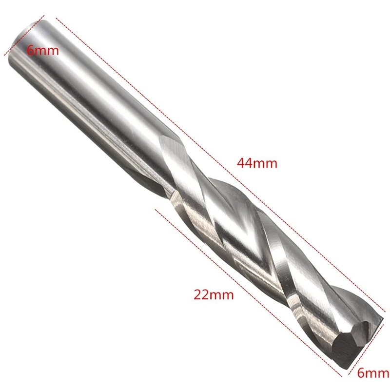 1 шт. спиральный резак с двойной канавкой, Фрезы с ЧПУ, сверла для дерева, акрила, карбидные фрезы с 2 канавками 6*6*22*44 мм, фреза