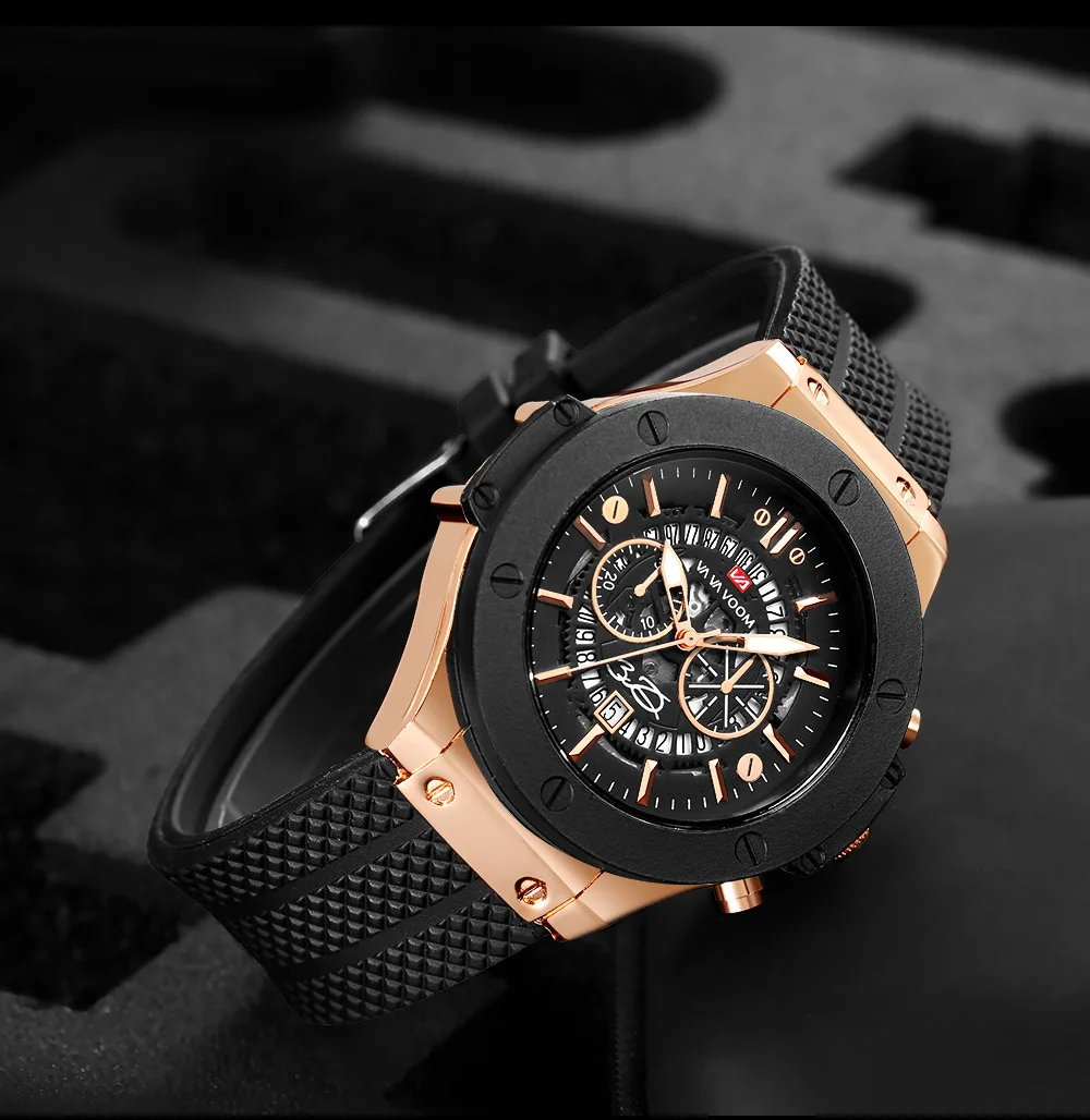 Модные мужские кварцевые часы VAVA VOOM с календарем и силиконовым ремешком, спортивные роскошные деловые водонепроницаемые наручные часы с автоматической датой