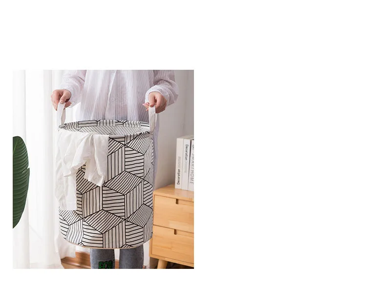 Продукт: корзина для хранения/корзина для грязного бельяРазмер: 41,5*35 смМатериал: хлопок и ленОсобенности:Хлопок и лен, водонепроницаемое покрытие PE внутри, структура, большая емкость, аккуратное хранение, экономия местаУпаковка: 1 корзина для грязного бельяСовет: размер измеряется в реальных предметах, поскольку метод измерения отличается, возможна погрешность в 1-3 см