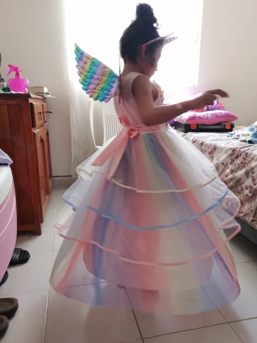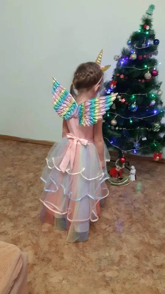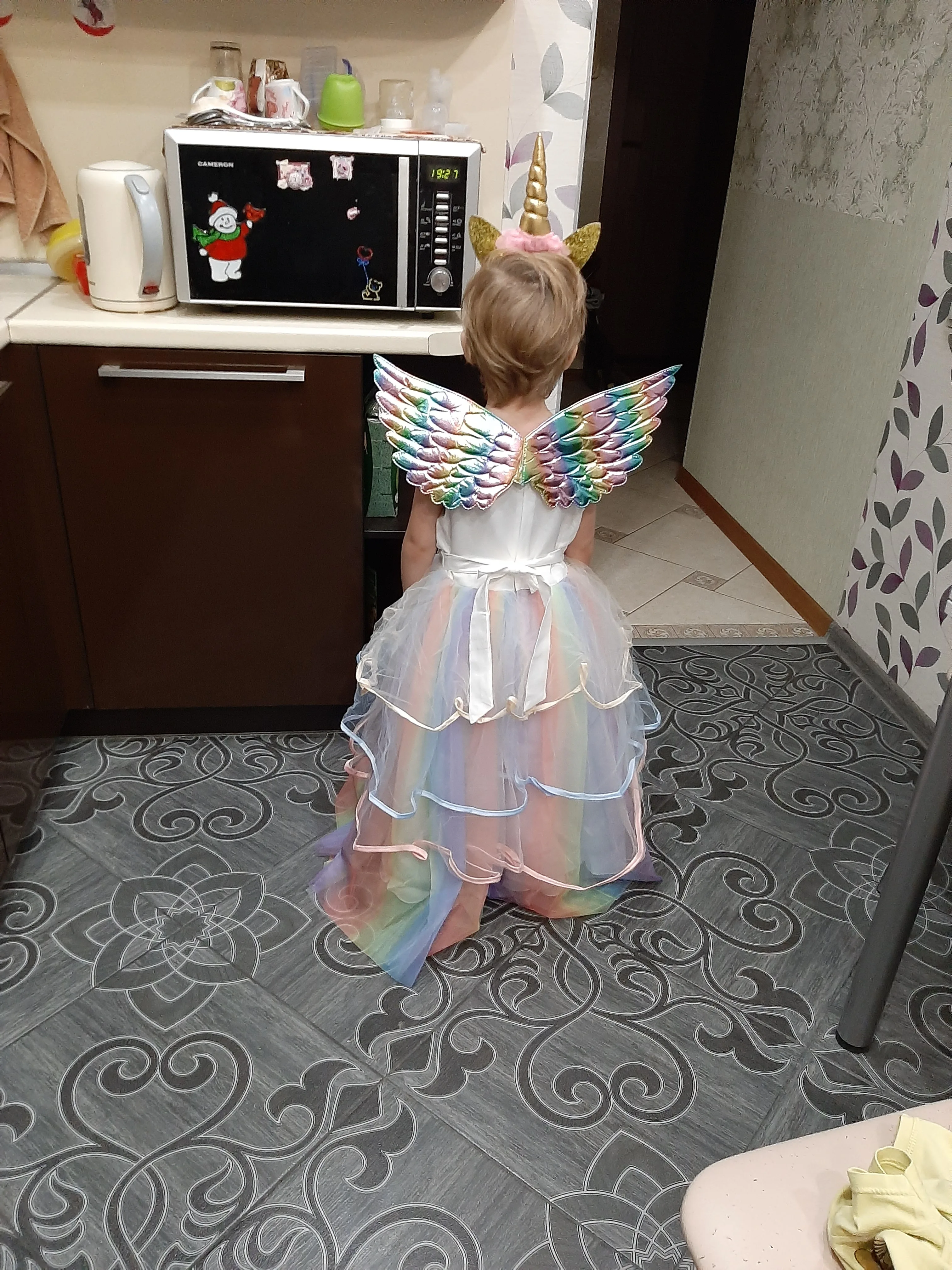 Платьем довольны, и обручем, и крылышками. Хорошее качество. Дети в восторге. Девочки мечтали о таких костюмах (я купила 2 костюма). Спасибо продавцу!