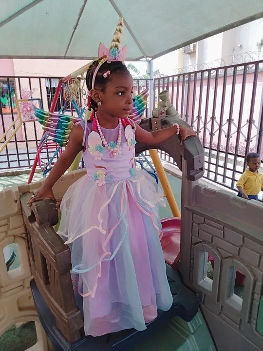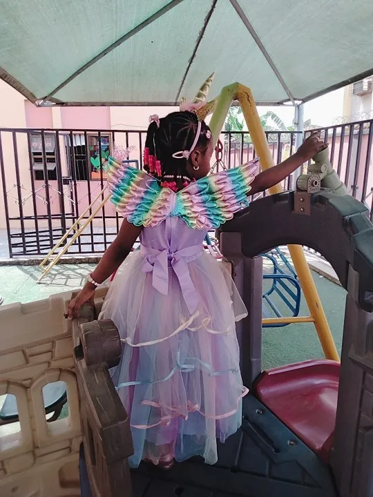 Дочь довольна. Молния на спине нужна помощь. Размер 5 лет подходит для этого возраста.