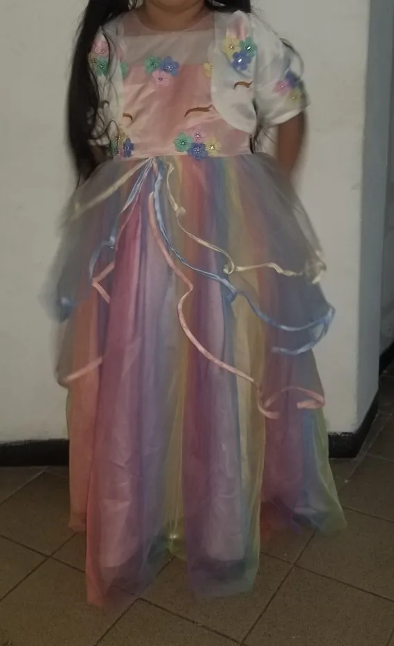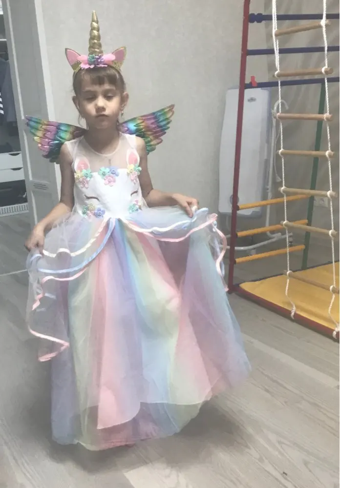 Заказ от 11 ноября пришел только 15 января!!! 2 месяца ждали, а платье заказывали на новый год дочери, на утреник в детский сад, она очень расстроилась, что вовремя не пришел наряд. Просто лежало на таможне порядка двух недель без движения, думаю, продавцу надо думать о том, чтробы его покупатели вовремя получили товар! Пришлось срочно бежать покупать другое платье! Само изделие хорошего качества, нитки торчат, но не критично, пришло очень мятое, без отпаривателся нечего и думать расправить, а утюгом нелья, такую тонкую ткань и сетку! В комплекте ободок, держится хорошо, нетяжелый. Платье понравилось, размер на девочку 4,5 года, рост у нас 110 см , платье как раз ровно до пола, идеально село, но за такую доставку просто снижаю баллы! Доставка 2 месяца-это ужас!
