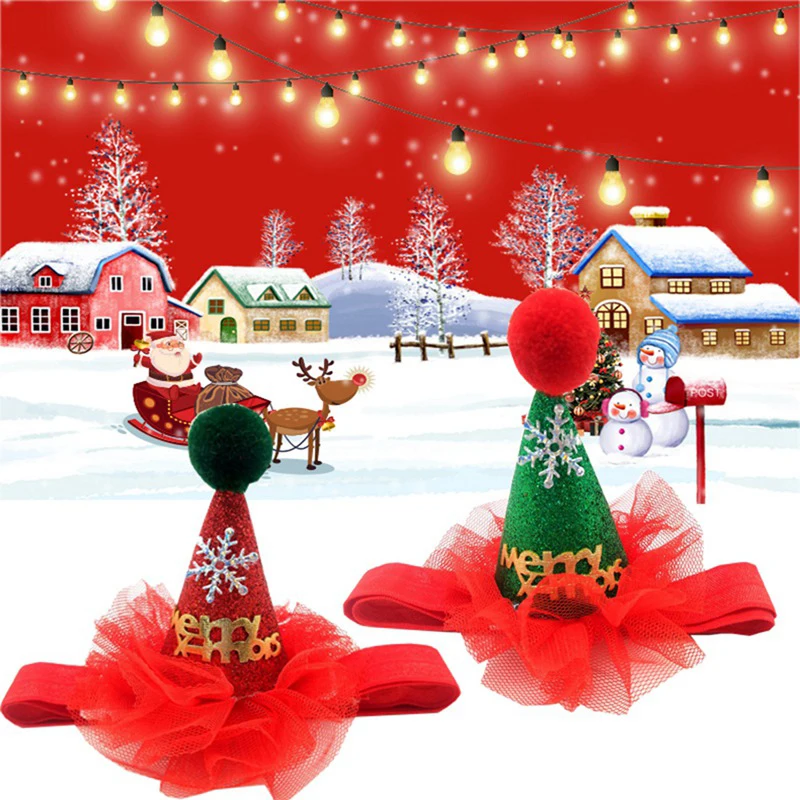 Шапка для собак и кошек, шапка для щенков и собак с повязкой на голову, милые головные уборы с блестками, шапка для рождественской вечеринки, товары для домашних животных