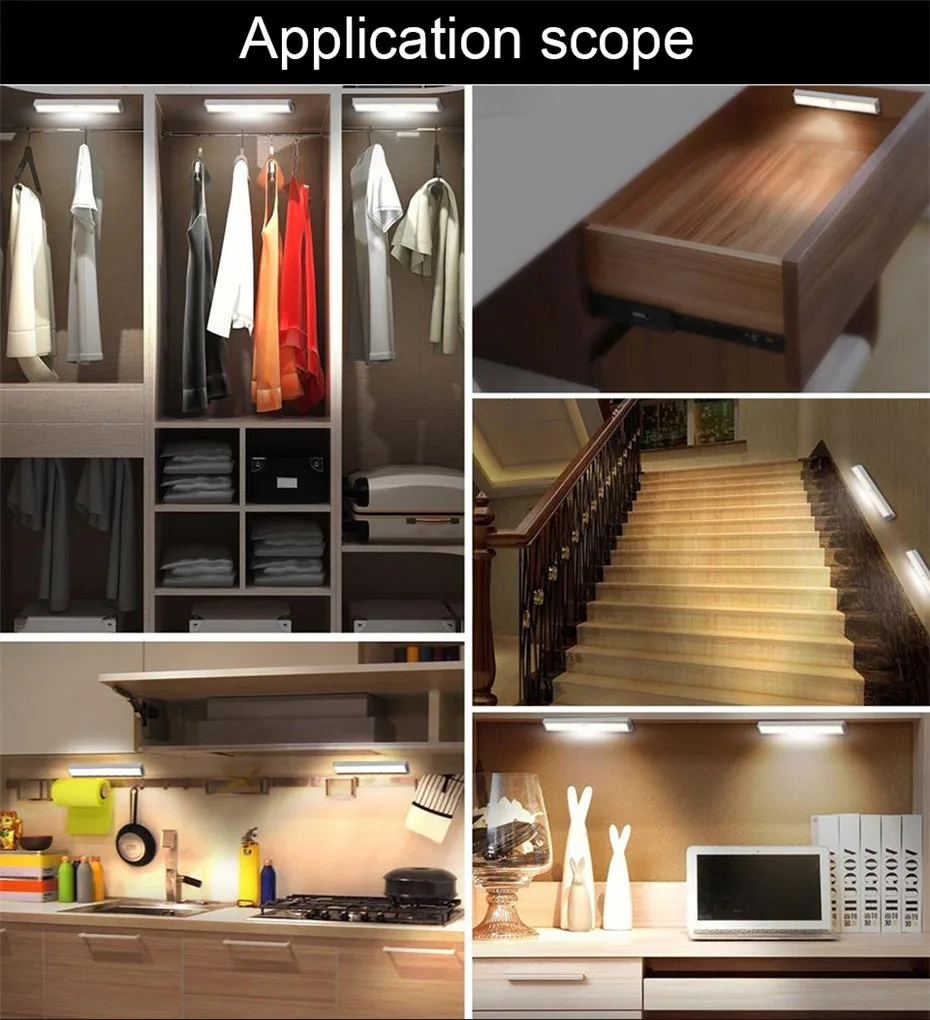Ночной светильник с датчиком может быть установлен в шкафу, лестницах, складе, прикроватной тумбочке, подвале, туалете, лестницы, коридоре... Он не заряжен и прост в установке, он может значительно облегчить вашу жизнь.