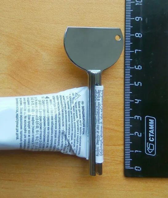 Не совсем понтяно, как использовать с пластиковыми тюбиками: в щель - сползает, накрутить - раскручивается.