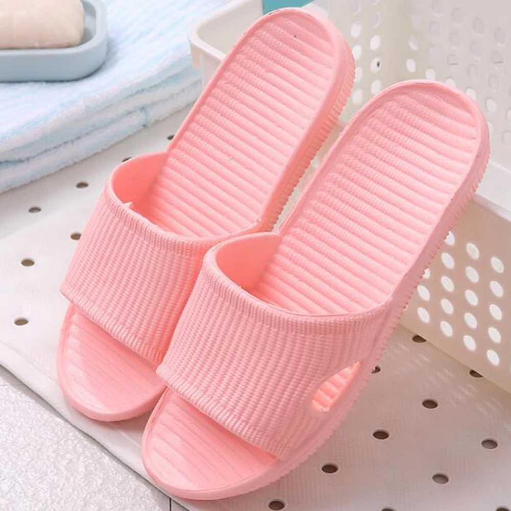 Шлепанцы женские домашние Нескользящие, летние Семейные тапочки для дома, в полоску, плоская подошва, для ванной, пляжные тапочки, сланцы