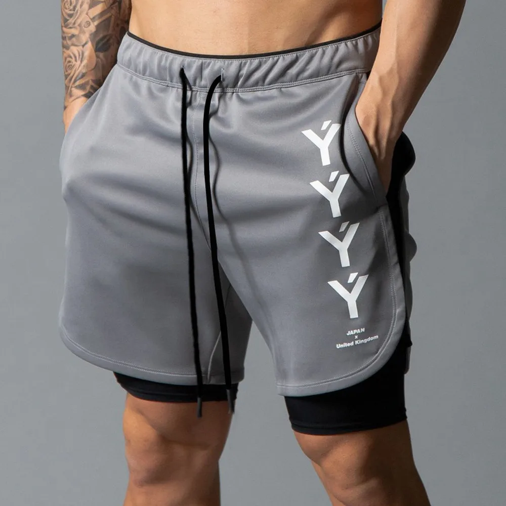 Шорты мужские для фитнеса и бега, быстросохнущие короткие штаны, повседневные свободные пляжные, 2 в 1