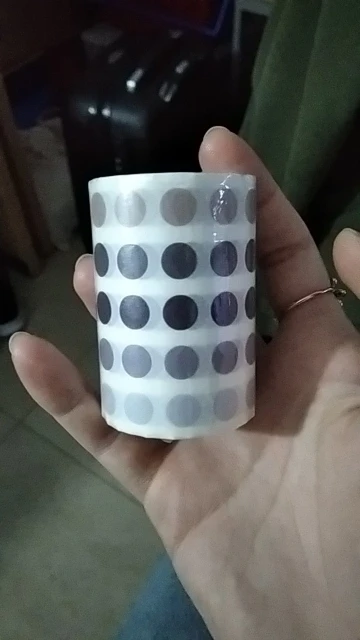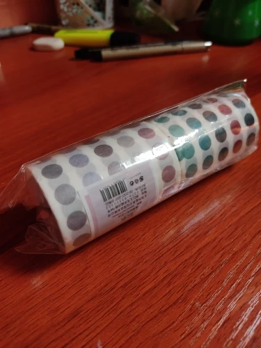 Заказала 12.12.20, пришли 08.01.21. Брала за 123 рубля. Упаковано хорошо, в пластиковую обертку. Кружочки маленькие, представляла их больше, но лично мне это даже в плюс. Сам край ленты к цилиндр приклеен бумажным скотчем. Когда его открываешь, три ряда кружков вместе с ним) Писать на них можно, только гелевая ручка стирается, шариковая пишет с пробелами. Под кружочком надпись видно плоховато (на фото выглядит намного лучше, чем в жизни). В целом заказом довольна, буду заказывать ещё