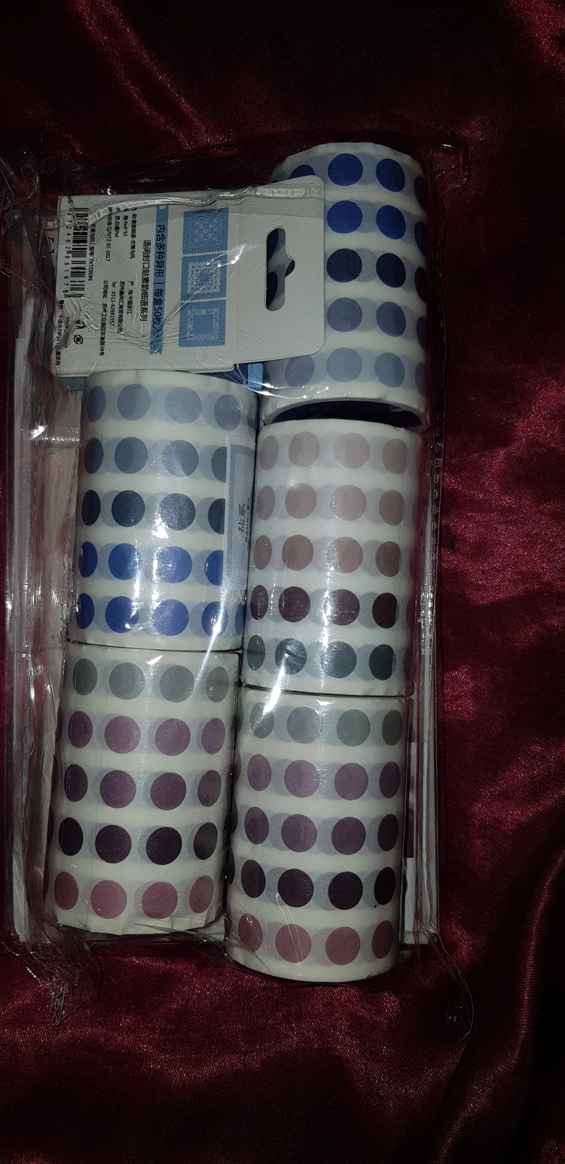 быстрая доставка, объединили с другими посылками от других продавцов (трек номер тоже поменялся и стал общим). маленькие круглые наклейки, удобные и симпатичные