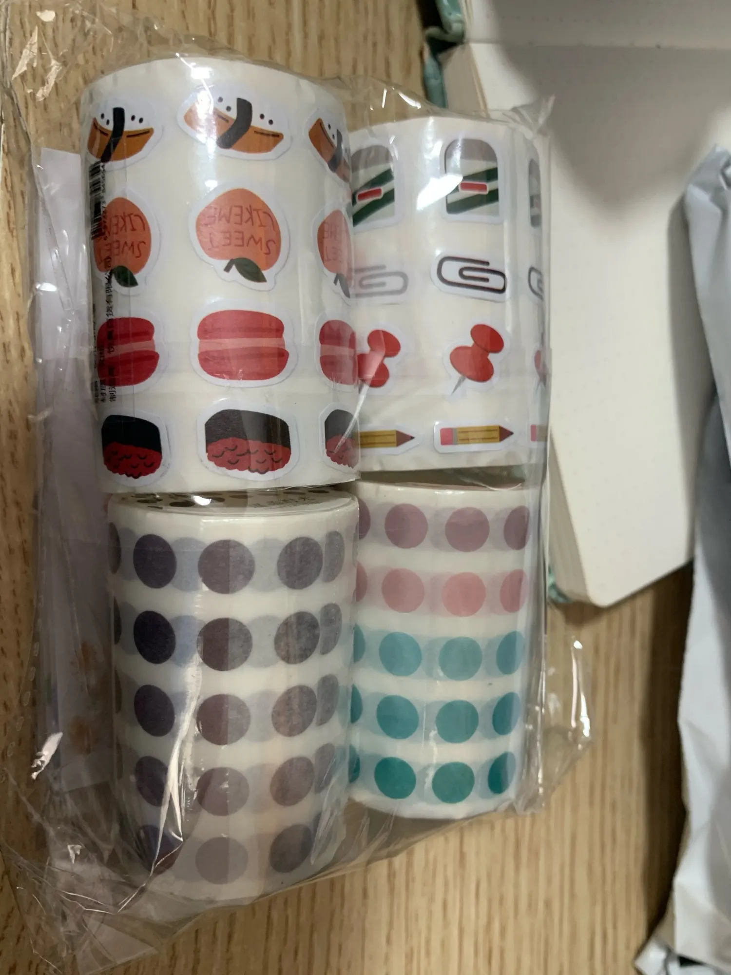 Приятно! Много наклеек в горошек. Цвета оправдали мои ожидания, но размер не подошел. Я ожидал, что они будут немного больше