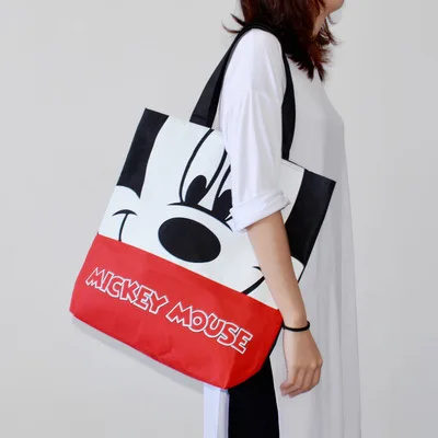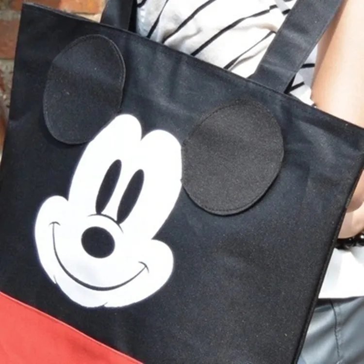 Холщовая Сумка-тоут с мультяшными героями Диснея, Микки и Минни, стежками, Большая вместительная сумка через плечо, сумка для покупок Bao Ma