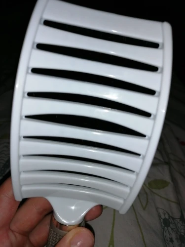 Шикарная расческа! Легкая - весит всего 83 гр., ручка удобная, прорезиненная. В руке лежит отлично. В ручке с торца есть магнит - за него можно подвешивать расческу к металлическим поверхностям. Так гораздо удобнее. Расческа висит на магните и не падает под тяжестью собственного веса. Со скидками из группы вконтакте GXSmart купили эту расческу всего за 132 рубля ($1.76). Ловите скидки. Товар и продавца рекомендую.