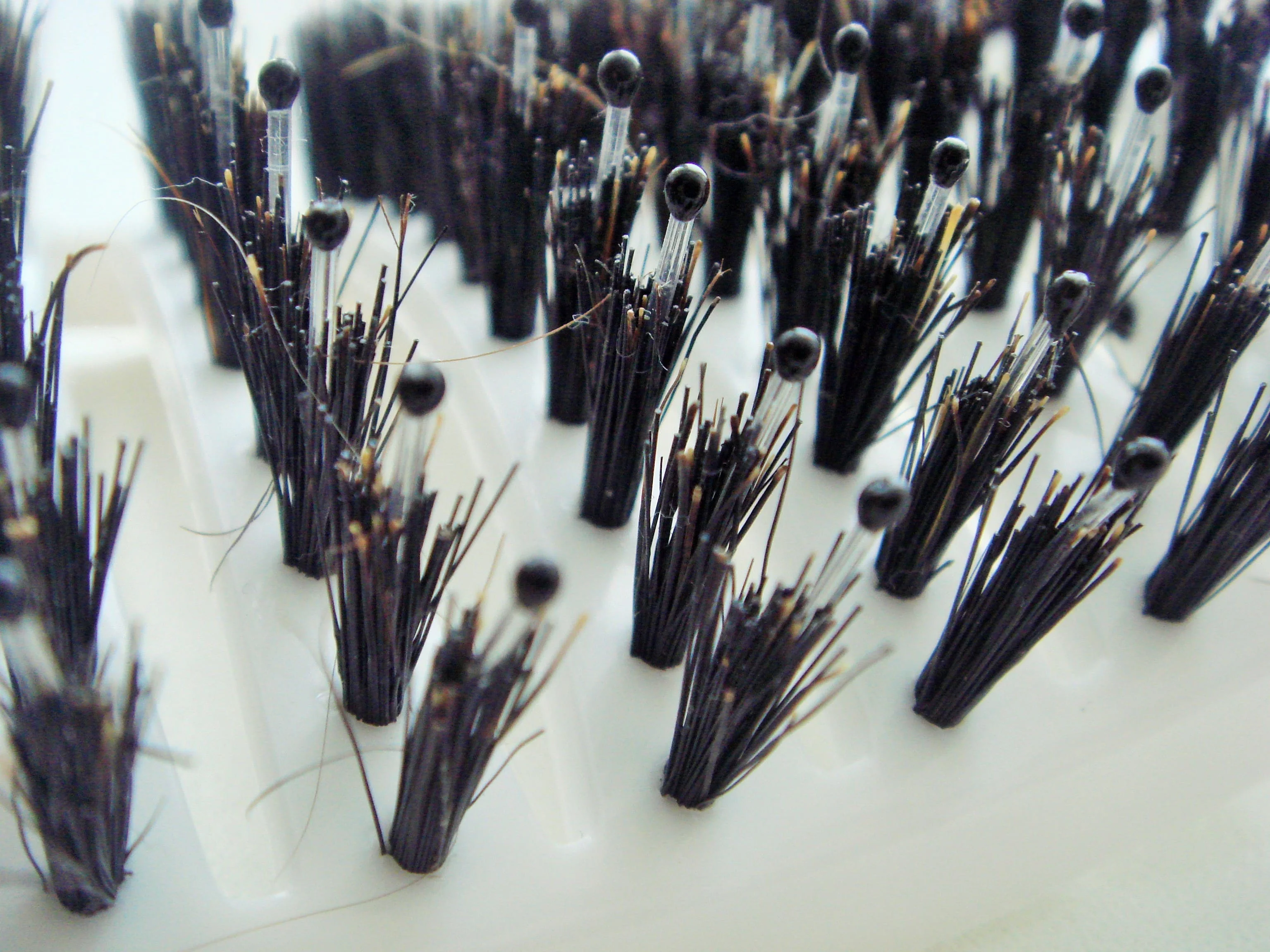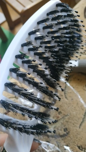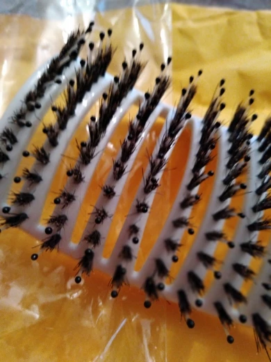 Нам с дочкой расчески пришли одновременно, поэтому повторю ее обзор, полностью согласна с каждым словом. Расчески эти беру регулярно на подарки. Так вот, хочу сказать, что качество товара снизилось, причем везде. Сравните щетку, купленную про запас год назад (справа) и щетку, купленную на подарок сейчас, в этом магазине (слева). Разница в аккуратности заметна. Не думаю, что это сильно отразится при причесывании, а вот вылезет такая щетина быстрее, уже несколько щетинок вылезло.