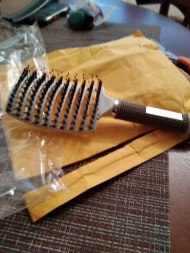 Отличная щетка! Достаточно мягкая, но при этом хорошо прочёсывает. Волосы не рвёт, не портит. За счёт изогнутой формы приятно массирует голову. Доставка до РнД около месяца. Продавцу огромное спасибо