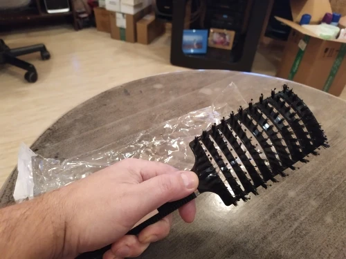 Расческа пришла очень быстро, снимаю одну звезду за то, что некоторые зубчики очень смяты.
