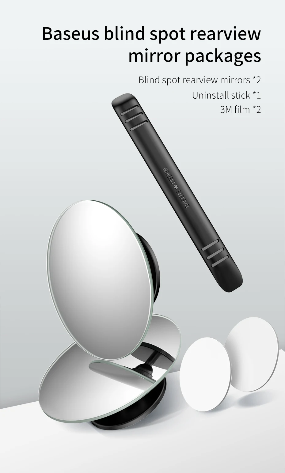 Зеркало для слепых зон Baseus, 360 градусов, универсальное, широкоугольное, бескаркасное