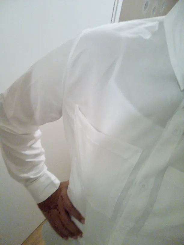 Рубашка хорошая, но материал прозрачный и очень синтетический. Я бы хотел, чтобы он был смешан с хлопком.