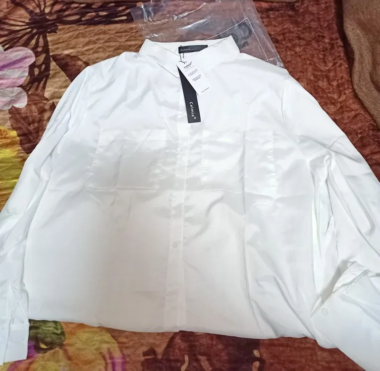 <2en> мягкая легкая ткань и цвет действительно белый; Мы видим прозрачность. <2en> я сделал французский размер и получил L; Размер очень хороший <2en> рубашка Длинная, как я хотел. <2en> воротник имеет хорошую форму, идеально подходит под свитер Быстрая доставка